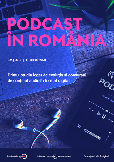 Prima ediție a studiului 'Podcast în Romania' realizat de BRAT - Biroul Român de Audit Transmedia, cu susţinerea Thinkdigital, la inițiativa Băncii Transilvania, relevă date surprinzătoare, optimiste, legate de consumul de conținut audio în format digital. 73,6% acceptă sau consideră utile momentele publicitare din podcasturi, fiind o piață incipientă; publicitatea este adesea integrată sau în legătură cu subiectul discutat.